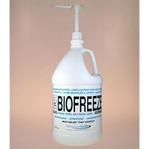 Biofreeze Pain Relief 1 Gallon Pump Bottle * BIOFREEZE can effectively help relieve pain from sore muscles, muscle sprains, back, shoulder, neck pain, arthritis, painful ankle, knee, hip and elbow joints, and muscular strains. Use BIOFREEZE to relieve pain prior to ultrasound treatments, massage therapy, soft tissue trigger point therapy, rehabilitation exercises and pre and post workout stretching.